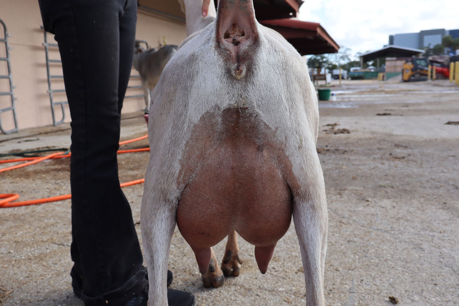 Mini looks just like her Dam! We are excited to watch her grow and develop. Mini is the first doe out of a buck we bred we are hoping she has a bright future!