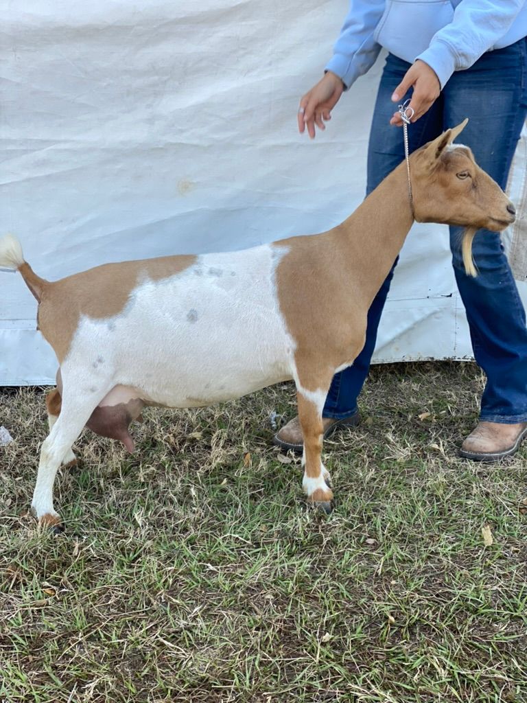 Pips Dam(Daisy) is the first doe we bred to have babies in our herd name. Pip was born at 14oz but you would have no idea. She gets commended for her great general appearance and dairyness.