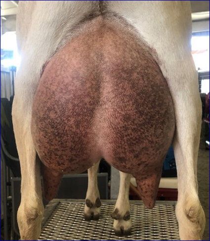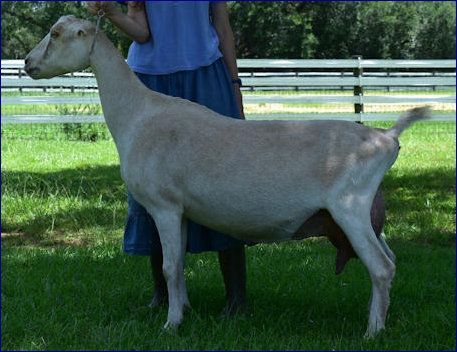 Nadya has been with us since she was a bottle baby! With some circumstances out of our control Nadya wasn't bred until she was 5, but that has not stopped her! We are excited to see her excel bath in the milk bucket and in the show ring!